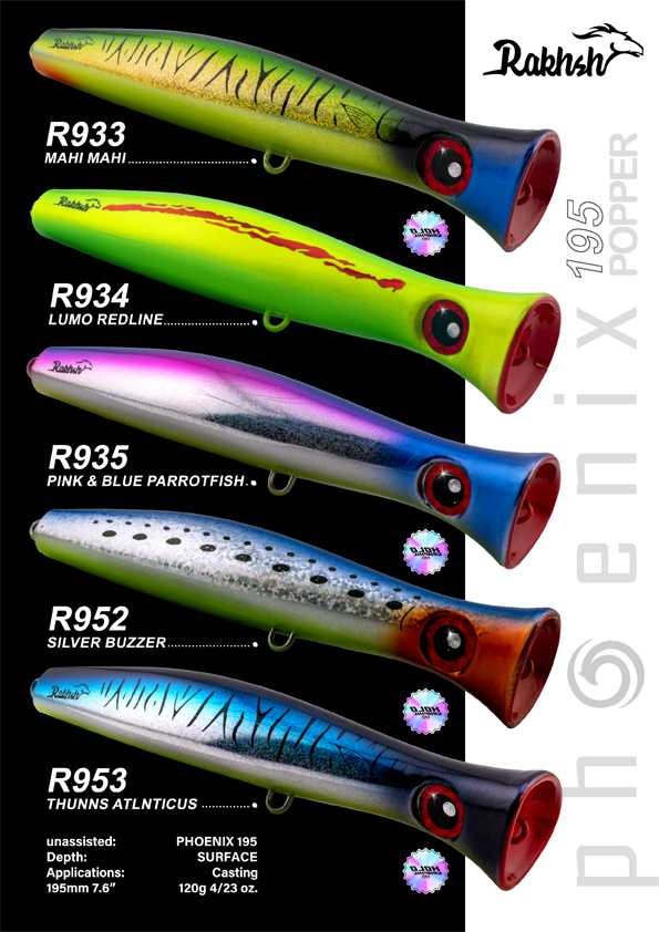 The PHOENIX 195 produces that awesome, thumping 'pop' as the cup catches the water's surface, and it sticks to the surface, significantly reducing the dreaded popper tumble. When subsurface, the PHOENIX 195 displays an awesome swimming action that just makes fish go wild, leaving a huge bubble trail and body wiggle. Its aerodynamics also ensure it casts like a bullet.